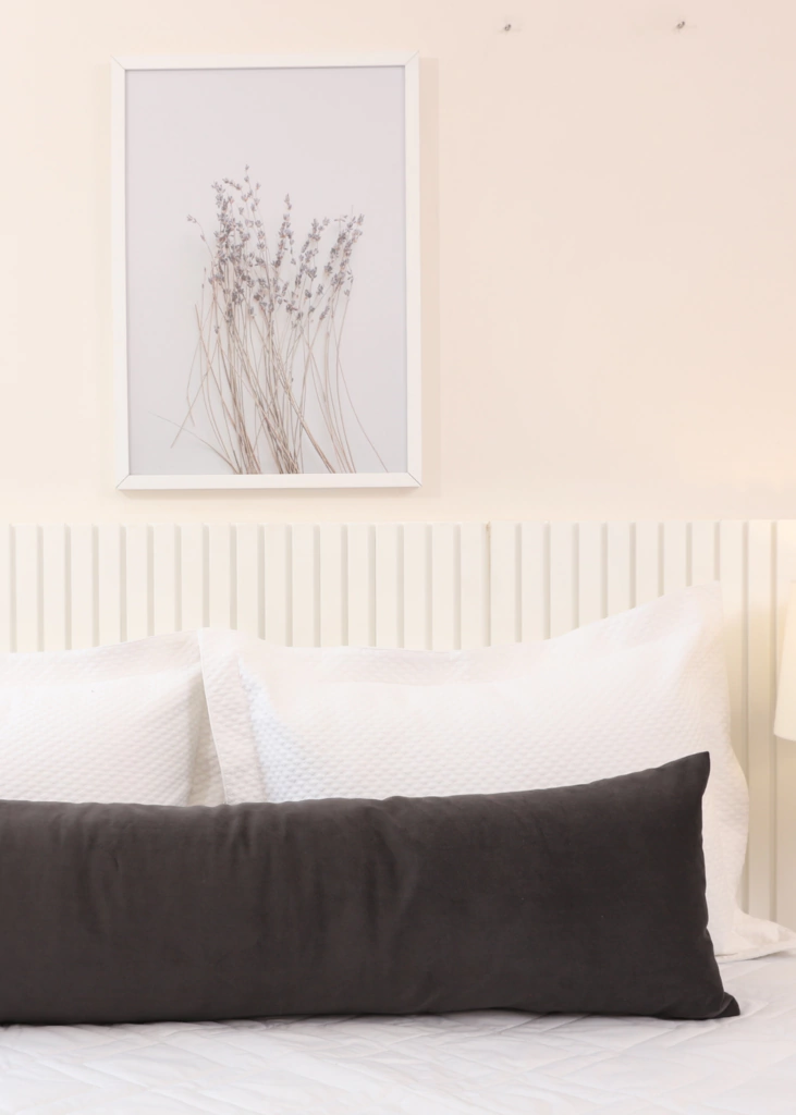 ALMOFADA DE CORPO EM VELUDO para deixar o ambiente estiloso e aconchegante. Desenvolvida com Design Exclusivo Cazachic. Essa almofada tem tamanho retangular 35x1,15. Feito em veludo Cinza Chumbo.