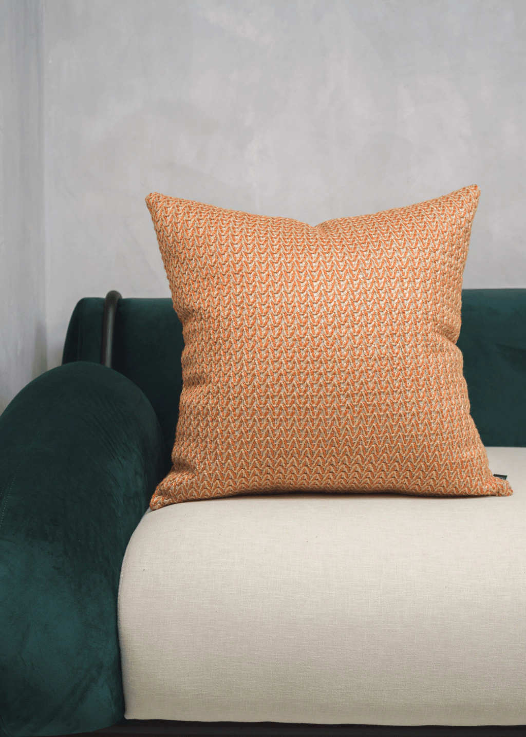 ALMOFADA EM LINHO BORDADO COBRE E OFFWHITE para deixar o ambiente estiloso e aconchegante. Desenvolvida com Design Exclusivo Cazachic. Essa almofada tem tamanho quadrado com 48x48, feita com linho bordado e verso em veludo Cobre