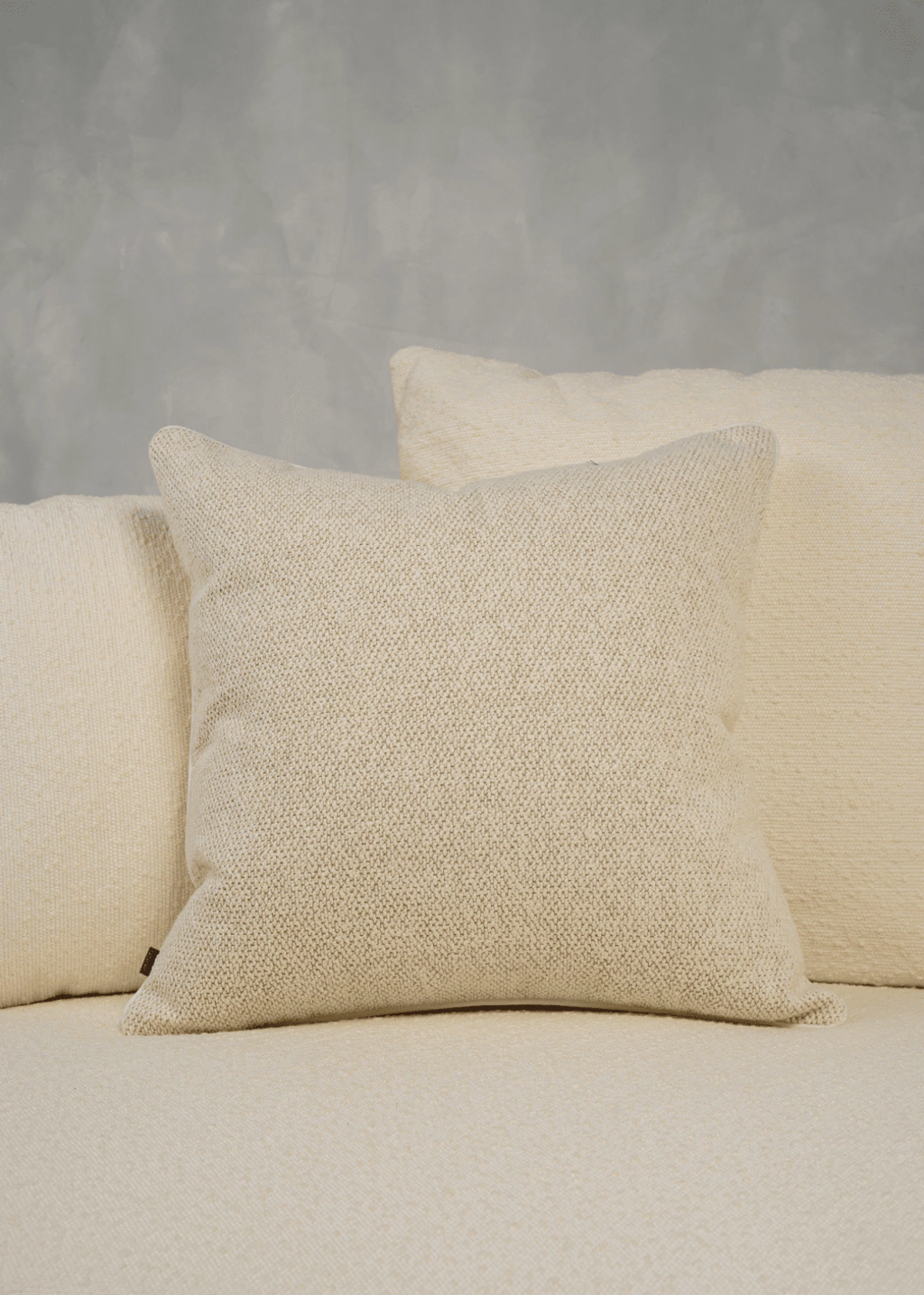 ALMOFADA EM BOUCLÊ OFFWHITE para deixar o ambiente estiloso e aconchegante. Desenvolvida com Design Exclusivo Cazachic. Essa almofada tem tamanho quadrado com 48x48, feita com linho semi Bouclê com detalhe em vivo.