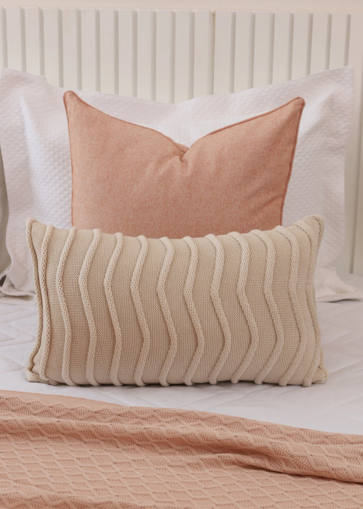 ALMOFADA EM TRICOT ONDAS RETANGULAR para transformar sua casa em um lar com estilo e conforto. Perfeita para deixar o ambiente mais aconchegante. Essa almofada maravilhosa tem shape retangular e é feita com tricot offwhite com verso em veludo.