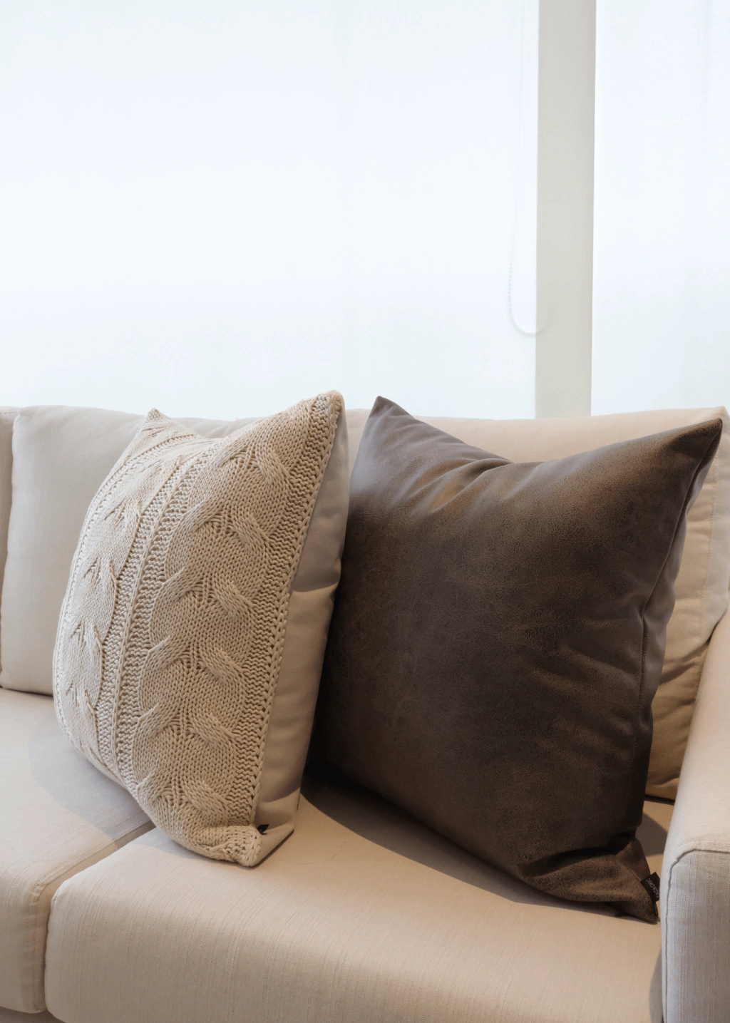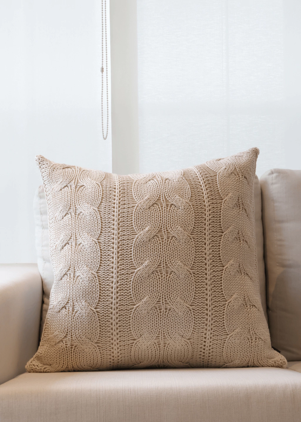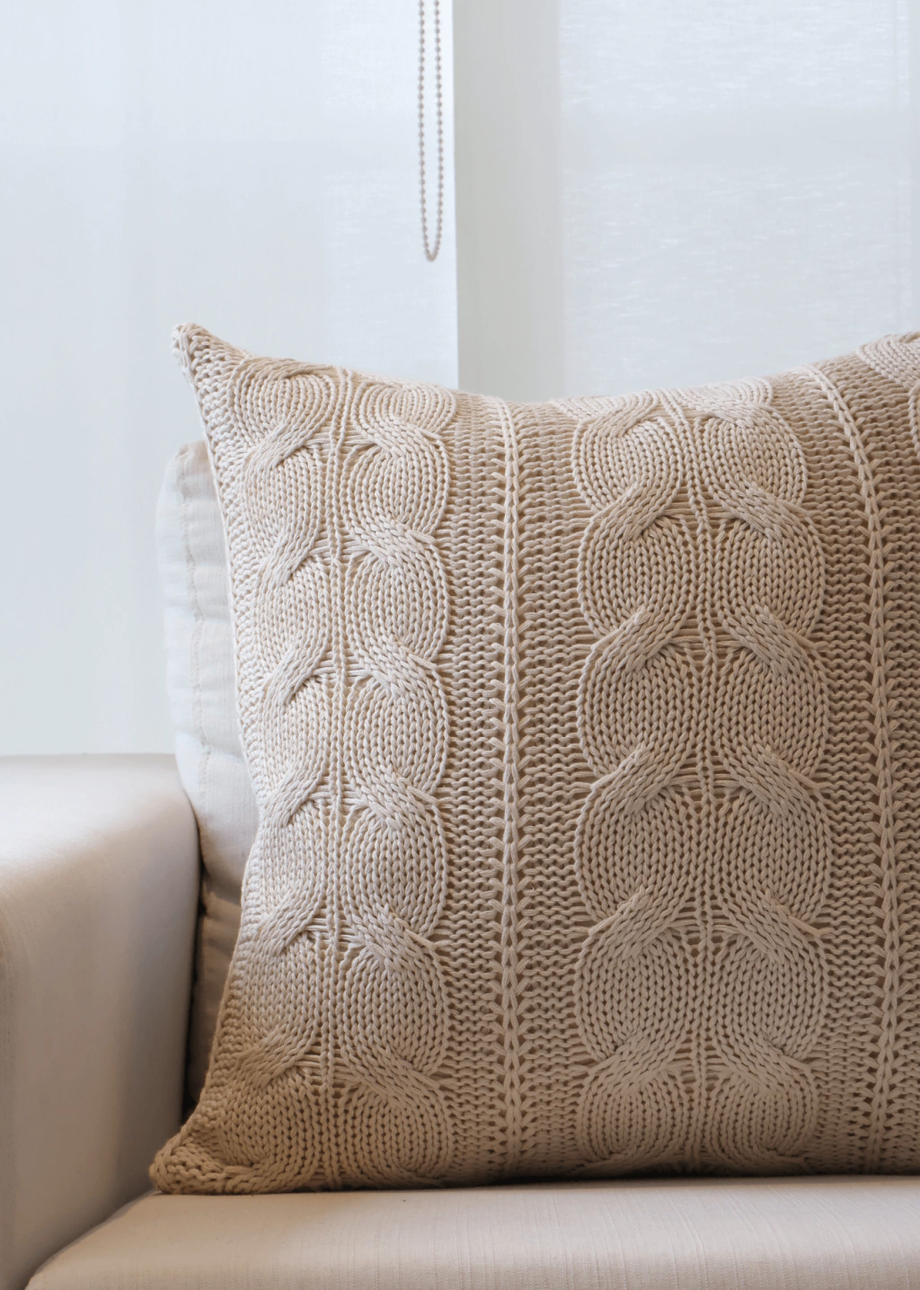 ALMOFADA QUADRADA EM TRICOT TRANÇA COM VERSO EM VELUDO para transformar sua casa em um lar com estilo e conforto. Perfeita para deixar o ambiente mais aconchegante. Essa almofada maravilhosa tem shape quadrada e é feita com tricot trança sisal com verso em veludo