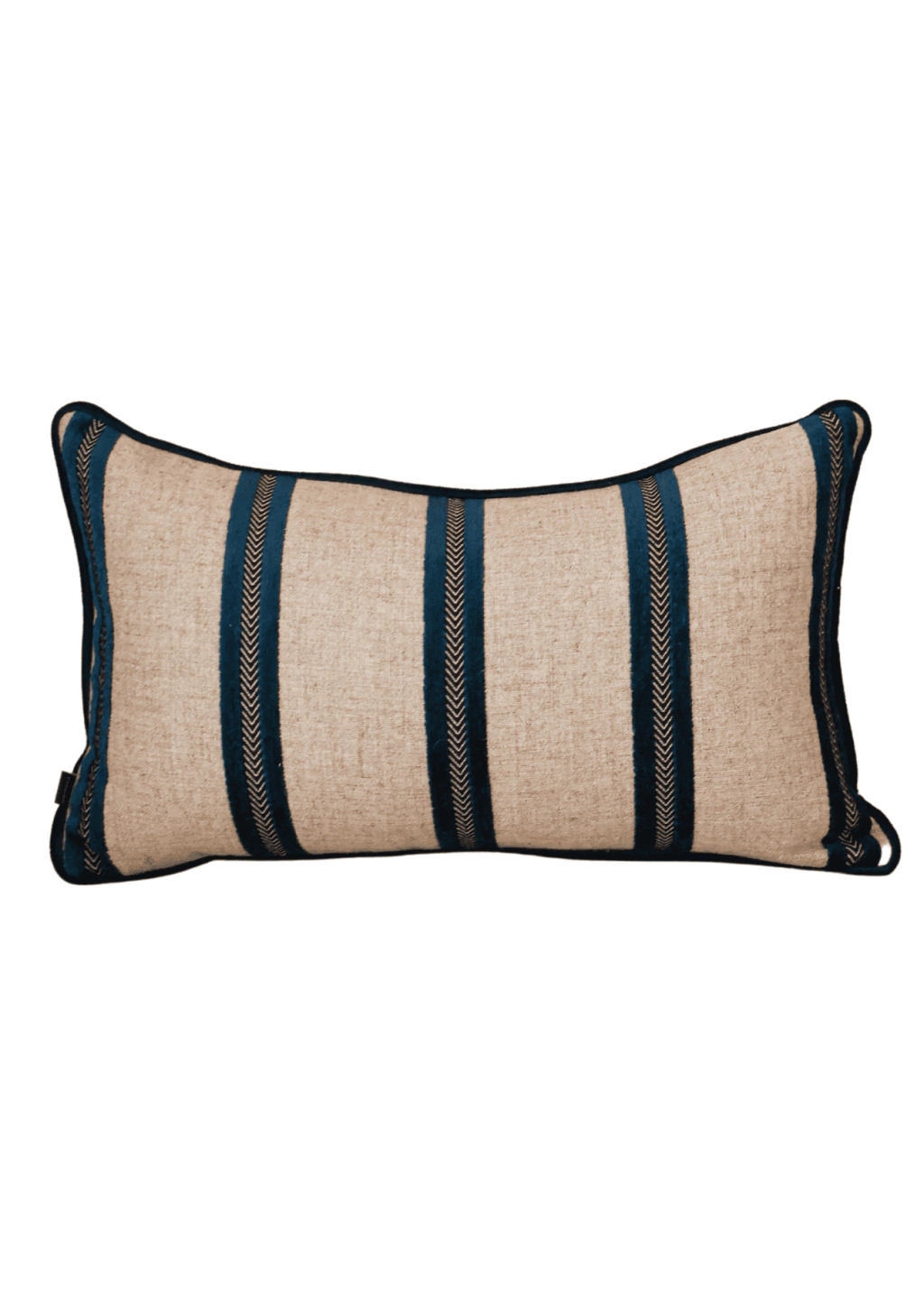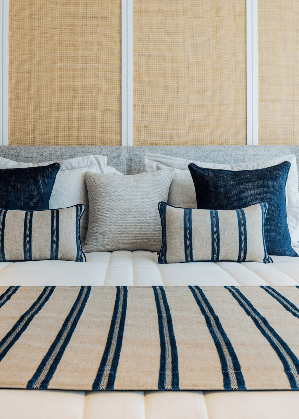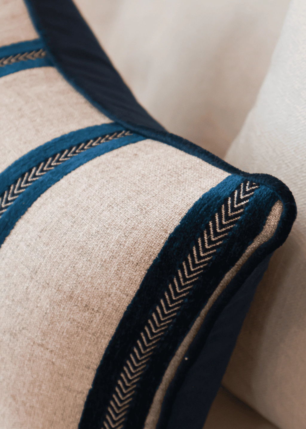ALMOFADA GRÉCIA AZUL MARINHO Grécia traz a sensação acolhedora de uma casa de campo, com seu tecido encorpado e estampa listrada em tons naturais e azul marinho. Uma peça que combina rusticidade com sofisticação, ideal para criar um refúgio de tranquilidade no seu quarto — perfeita para composições que pedem um toque de personalidade e bom gosto.
