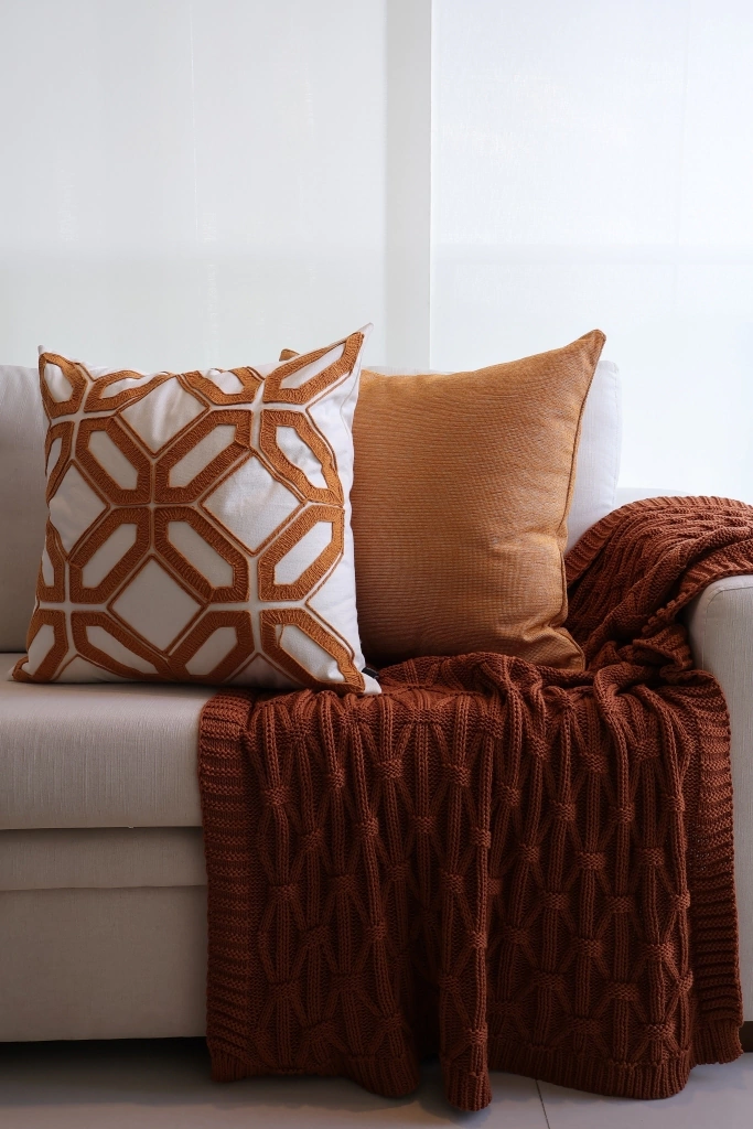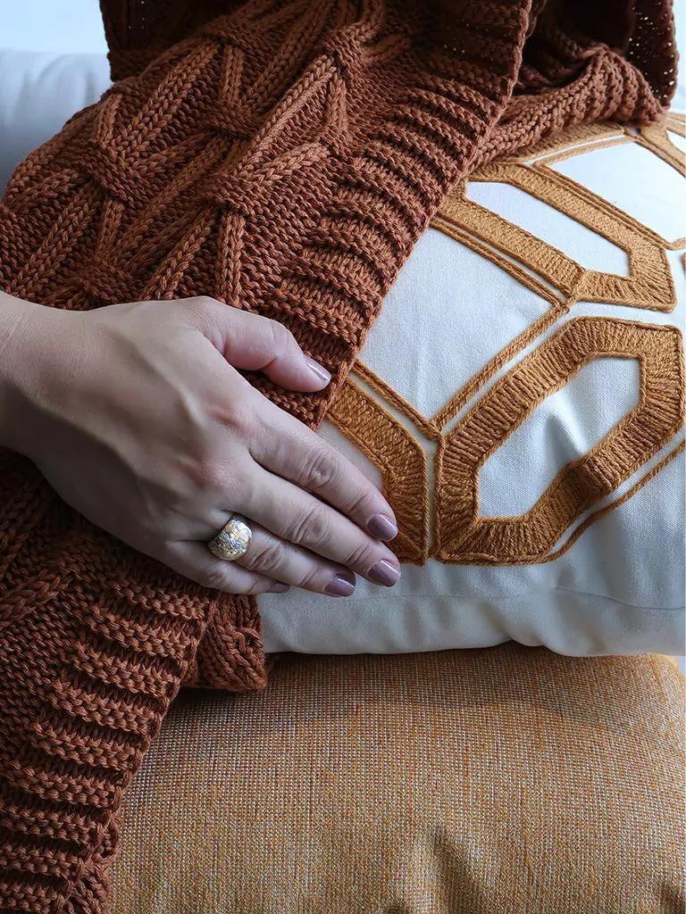 ALMOFADA OFFWHITE COM BORDADO EM COBRE para deixar o ambiente estiloso e aconchegante. Desenvolvida com Design Exclusivo Cazachic. Essa almofada tem tamanho quadrado com 48x48, feita com algodão Offwhite e Bordado Cobre.