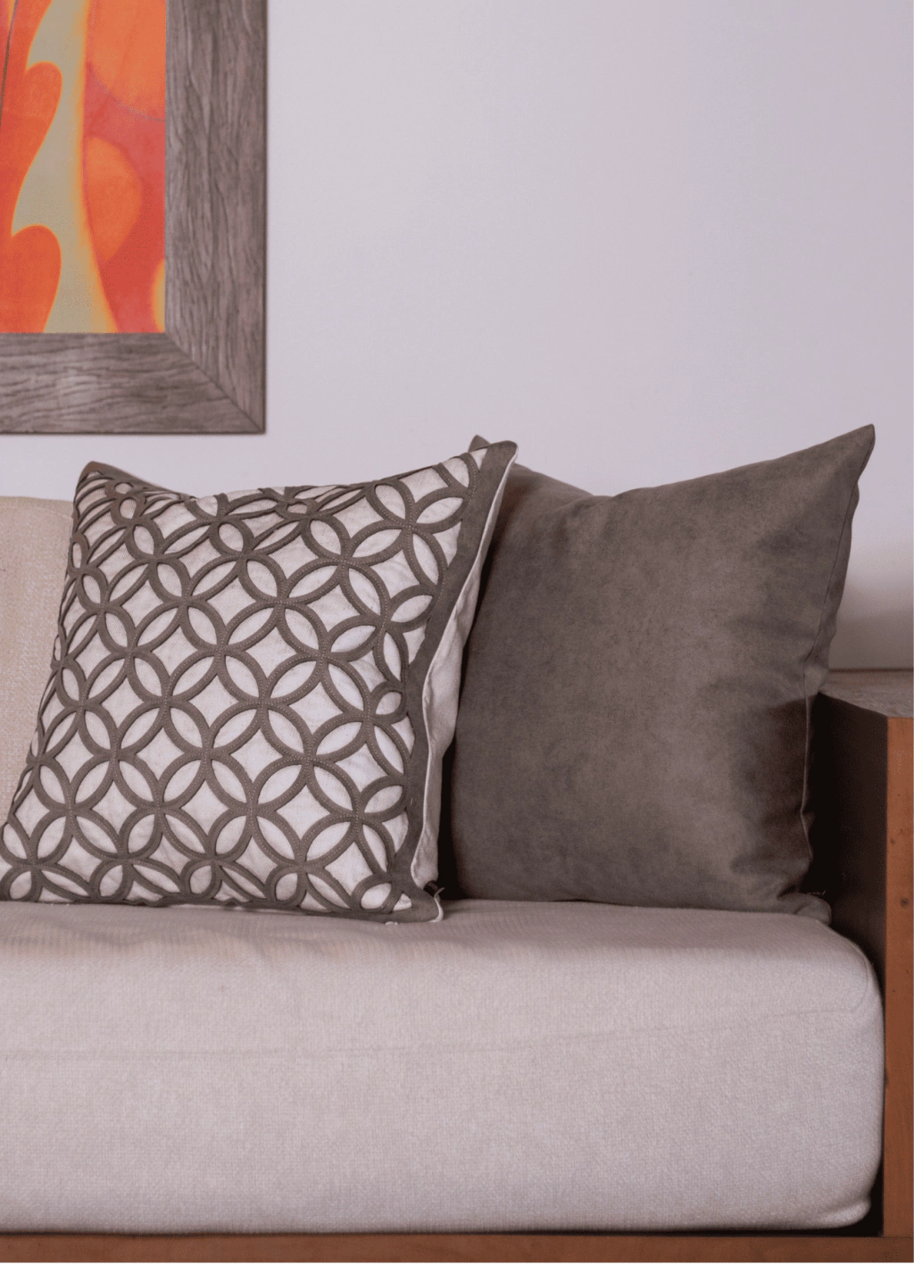 Almofada Vitruvio, inspirada em O "Homem Vitruviano" simboliza a conexão entre o corpo humano e a geometria do mundo ao seu redor, refletindo a crença renascentista na harmonia e proporção como princípios fundamentais da natureza e da arte. O desenho é considerado um ícone da fusão entre arte e ciência, representando o interesse de Leonardo da Vinci pela anatomia humana, bem como suas habilidades excepcionais como artista e inventor.