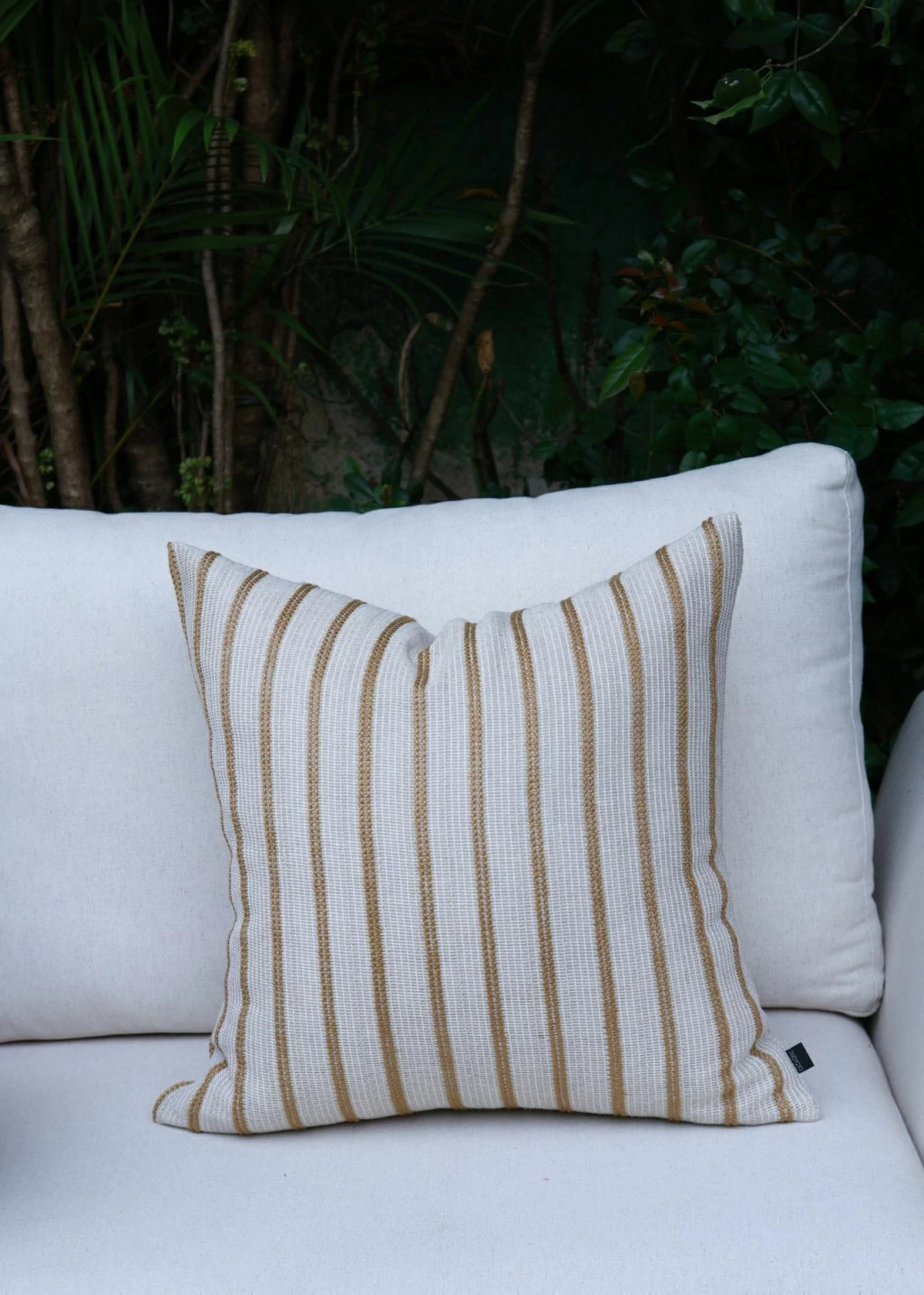 1 Almofada em Linho Offwhite e Dourado Quadrada 48x48