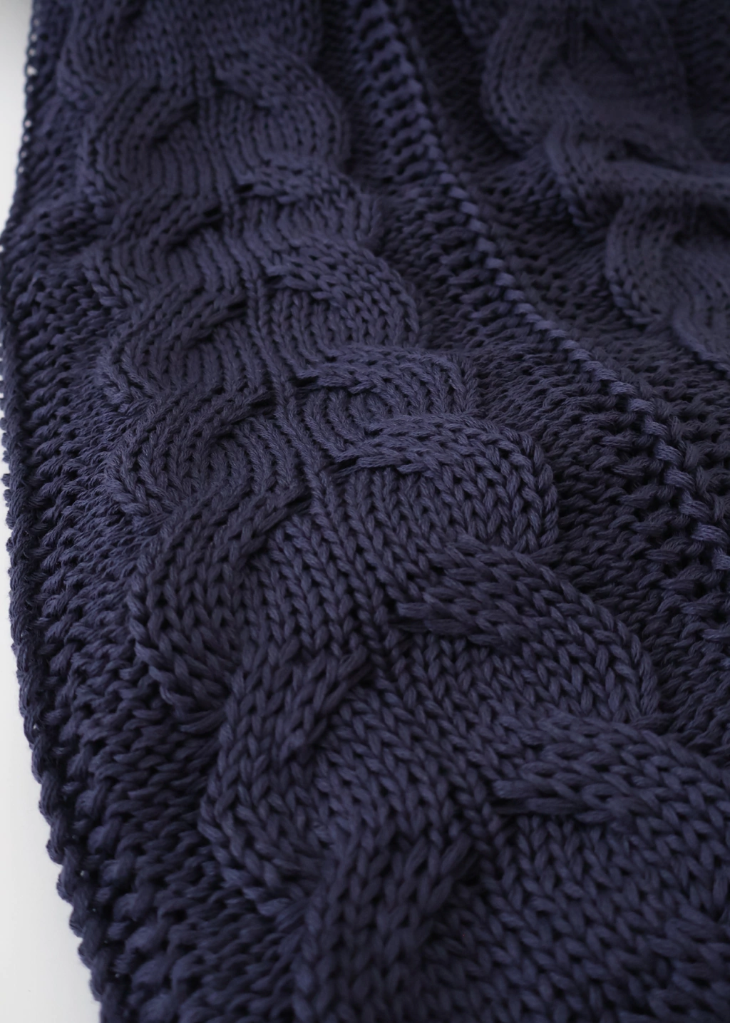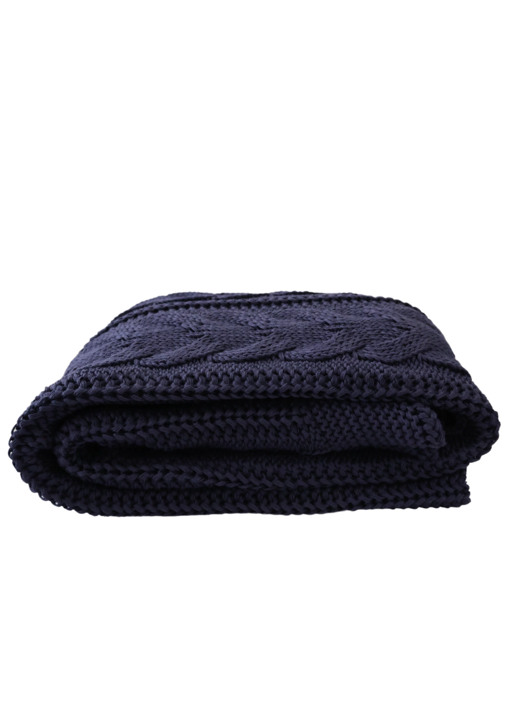 Manta Tricot Trança Azul Marinho – Sofisticação e Conforto para Seu Ambiente