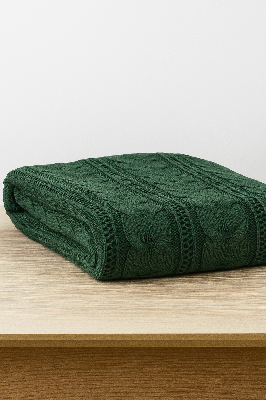 Manta Tricot Trança Verde Musgo — o toque de sofisticação que seu sofá merece. Com design exclusivo, essa manta retangular (1,10 m x 1,50 m) apresenta uma textura elegante em formato losango que valoriza qualquer ambiente.
