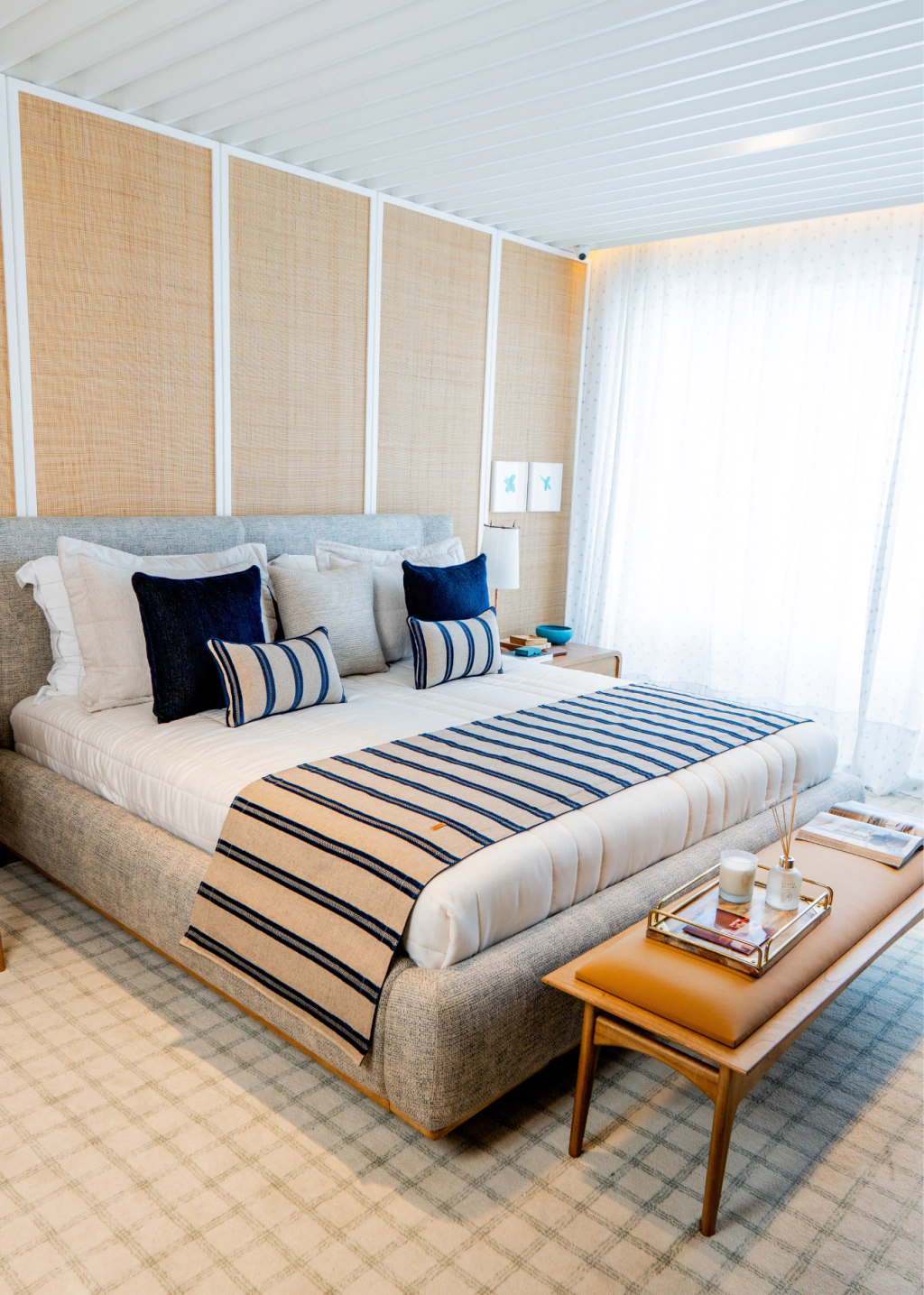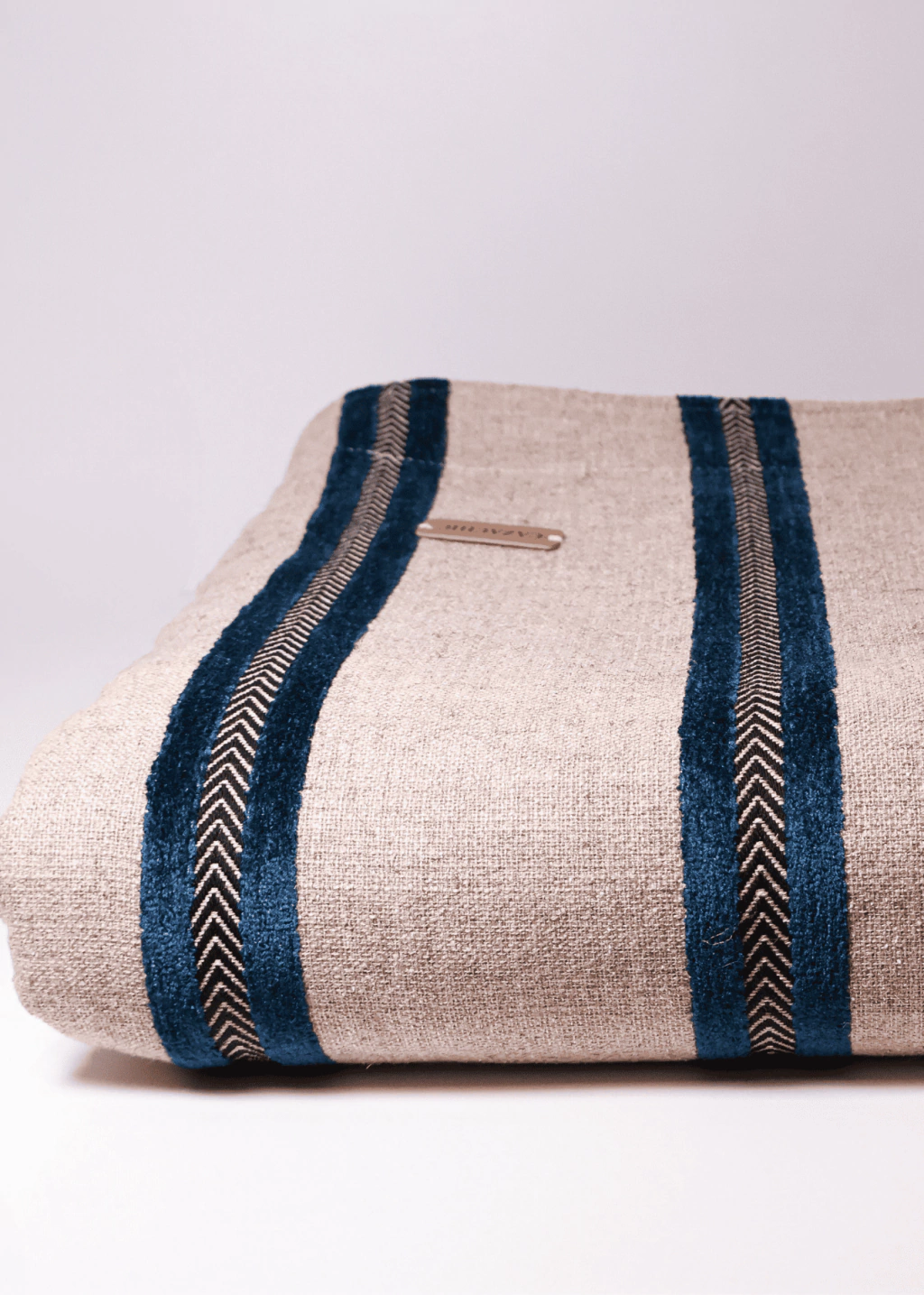 PESEIRA GRÉCIA Conforto com elegância natural, tecido encorpado e estampa listrada em tons naturais e azul marinho, a Peseira GRÉCIA combina rusticidade e sofisticação, criando um refúgio de tranquilidade no seu quarto. Inspirada nas ilhas gregas, ela traz a harmonia do azul profundo e os tons de areia, proporcionando textura, cor e aconchego irresistível ao ambiente.