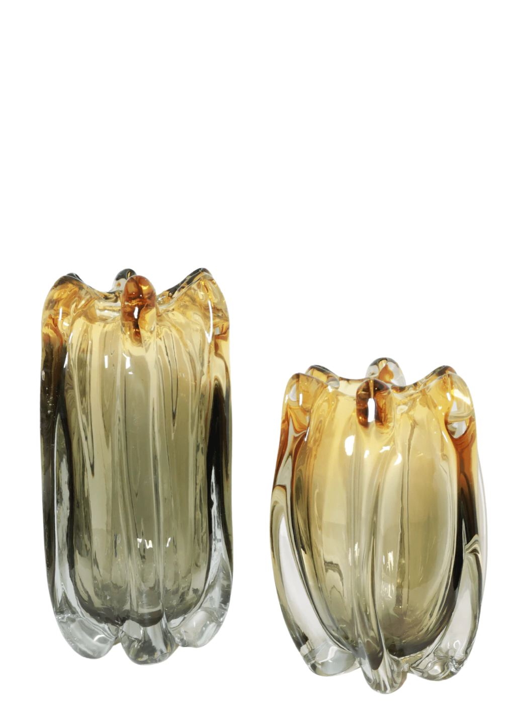 Vaso Murano em Vidro Grande - Cor: Ambar para dar um toque de elegância e sofisticação à sua decoração. Este vaso, feito à mão, é uma peça única que combina design contemporâneo com a tradição do vidro Murano.